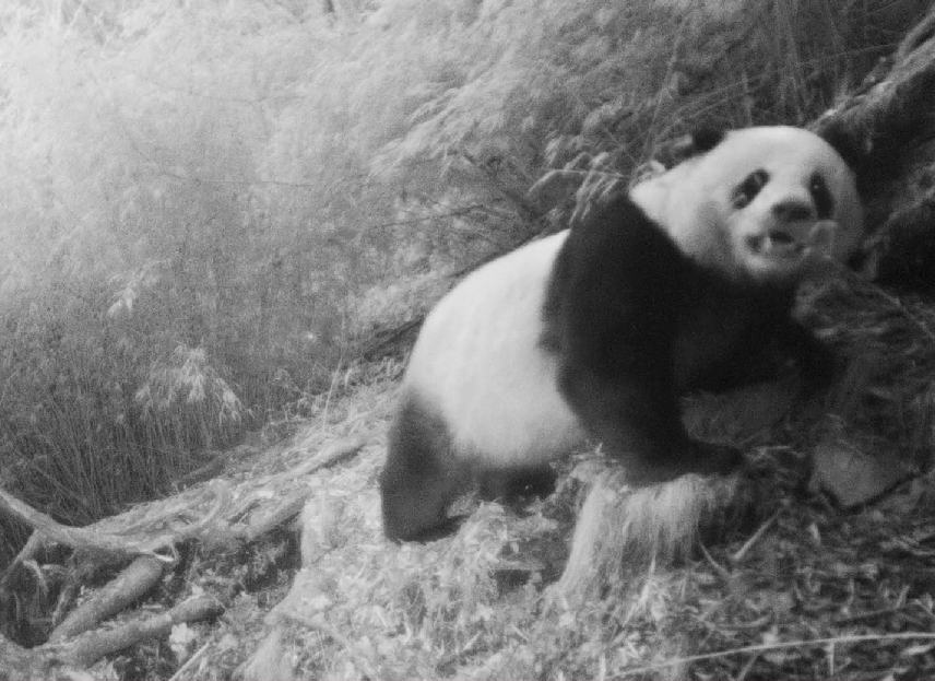 终日食竹,今被竹戏--唐家河保护区拍摄到三段大熊猫视频