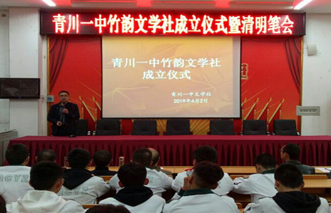 据悉,青川一中竹韵文学社是基于语文教研组每年组织的“清明笔会”活动。文学社的成立,在邱正权校长的指导下,经过语文教研组精心组织策划,通过了自愿报名、写作初评、演讲、面试等环节,形成了文学社的干部队伍,是青川一中第一个正式成立的社团组织,组织机构健全,拥有交流刊物《竹韵》。(青川一中 安笑坤)
