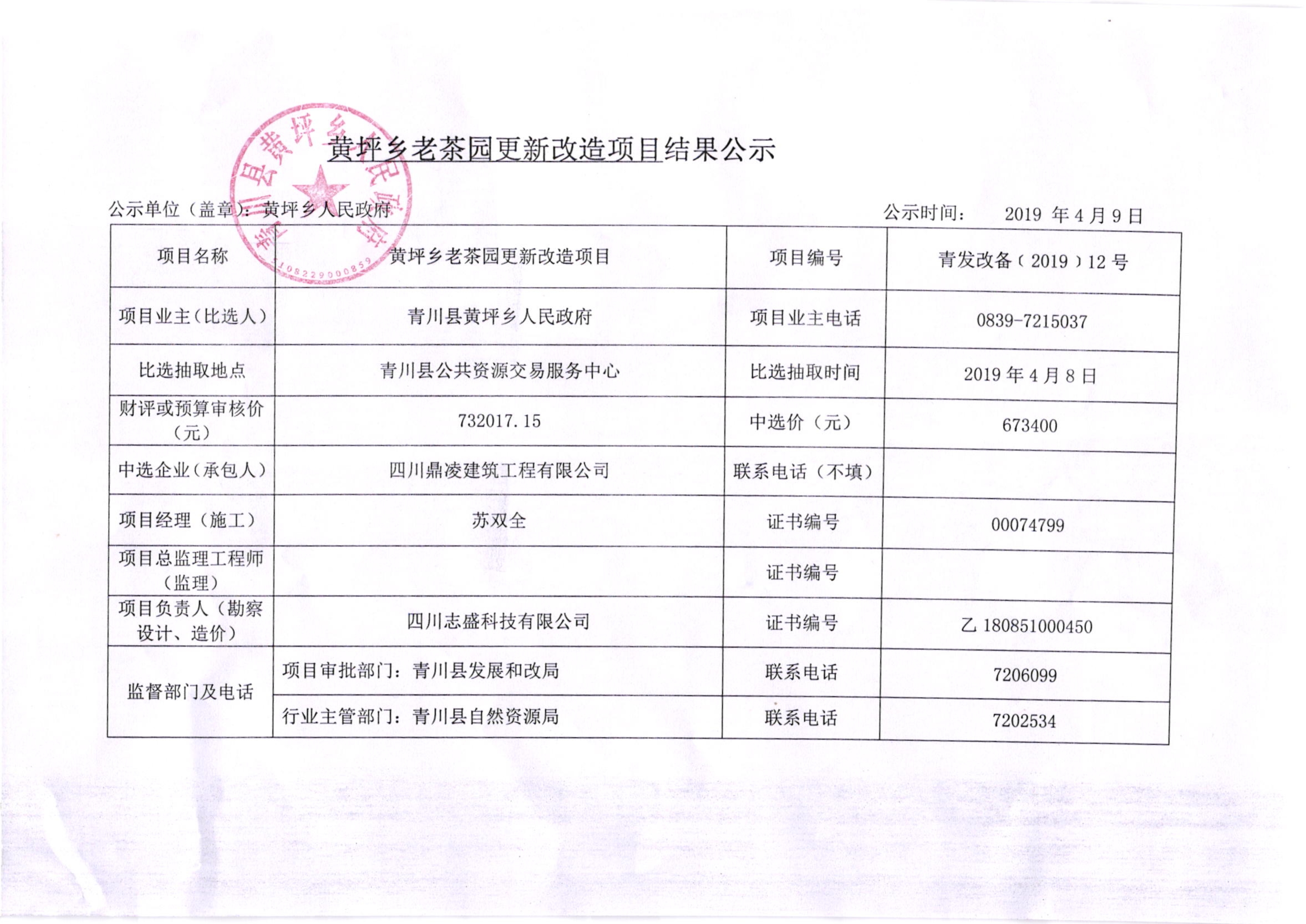 > 信息公开 > 黄坪乡老茶园更新改造项目结果公示