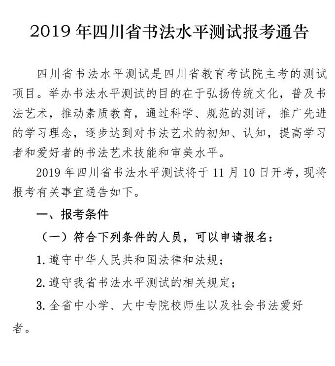 > 信息公开 > 2019年四川省书法水平测试报考通告