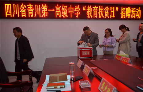 10月18日,四川省青川第一高级中学举行了“教育扶贫日”捐赠活动。下午,学校中层以上领导干部在行政楼会议室举行了现场捐赠仪式。青川一中校长邱正权主持了捐赠仪式。