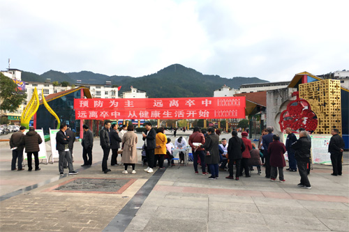 2019年10月29日是第14个“世界脑卒中日”,为提高广大居民对脑卒中的认识,提高健康生活意识和健康生活行为能力,倡导健康生活方式。10月29日,县卫生健康局组织县疾控中心、县人民医院、县中医医院、乔庄镇中心卫生院医务人员,在县明欣广场开展了一场主题为“预防为主,远离卒中”“远离卒中,从健康生活开始”的宣传活动。旨在通过广泛开展科普宣传和健康教育,普及脑卒中的防控知识,引导动员全社会共同参与脑卒中防控行动。