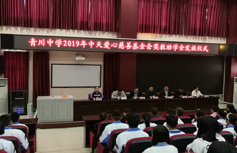 近日,青川中学在学术报告厅举行了2019年中天爱心慈善基金会“奖教助学”项目的发放仪式。县教育党工委书记,教育局党组书记、局长张强,县教育局副局长李久凯,中天建设集团西南公司工会分会主席何涛,中天建设集团西南公司办公室文宣干事胡松阳出席了此次发放仪式。会议由青川中学党总支书记、校长王海元主持。