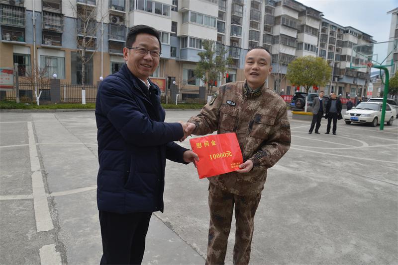 副县长、公安局长张富荣,县人武部党委书记、政治委员袁文博及相关部门负责人一同慰问。