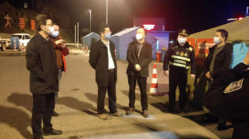 2月4日,县委常委、县委政法委书记张国辉,副县长雷挺一行到广甘高速木鱼收费站卡口督导新型冠状病毒感染的肺炎疫情防控工作,木鱼镇党委书记唐艳陪同。