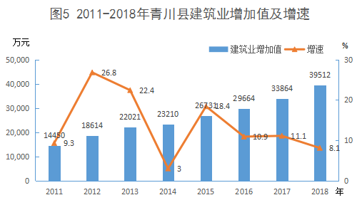 全县建筑业实现增加值39512万元,比上年增长8.1%,对经济增长的贡献率为9.4%。年末具有资质等级的施工总承包和专业承包建筑业企业2个,实现总产值15949万元,增长49.7%。
