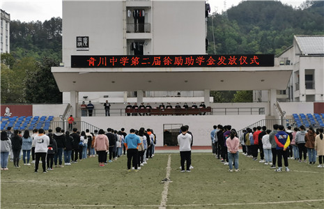 4月23日,第二届“徐励、谢九如助学金”发放仪式在青川中学运动场隆重举行。全校师生参加了发放仪式(高一、高二年级学生在教室收听)。仪式由行政信息中心主任苏勇主持。
