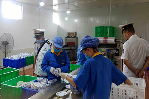 针对检查中发现的餐具、饮具回收、除渣、浸泡等环节流程欠合理和无标识;独立包装上未标明生产日期;个别从业人员未穿戴工作服。对现场发现的问题卫生监督员下达了卫生监督意见书责令立即整改,并现场给予指导。