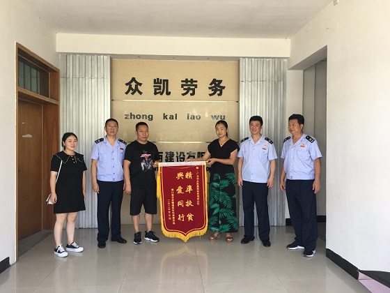 7月27日,乐安镇通坝村村委会向青川县众凯劳务有限公司赠“精准扶贫,与爱同行”锦旗,以感谢该公司倾力帮助通坝村罗通、罗正友贫困户危房改造的善举。该公司负责人表示,帮助2户村民进行危房改造,助力脱贫攻坚,是企业应该承担的社会责任,此次能与2户贫困户“结缘”,是与县税务部门“牵线搭桥”分不开的,要感谢税务部门所付出的心血,为我们企业和群众之间搭起了一座“连心桥”。