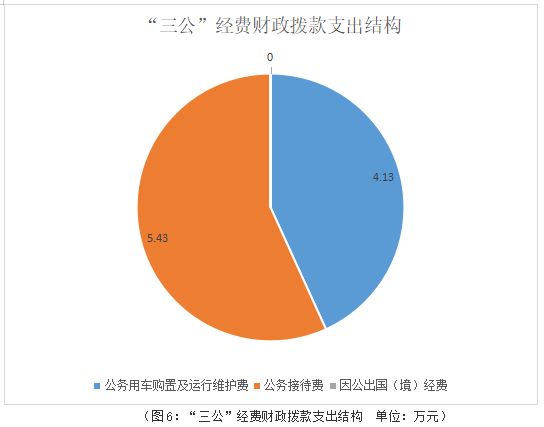 2019年度“三公”经费财政拨款支出决算中,公务用车购置及运行维护费支出决算4.13万元,占43.2%;公务接待费支出决算5.43万元,占56.8%。具体情况如下: