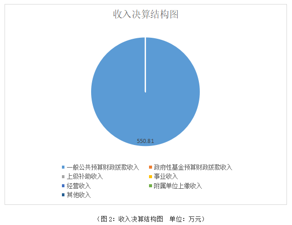 2019年收入合计550.81万元,其中:一般公共预算财政拨款收入550.81万元,占0%;政府性基金预算财政拨款收入0万元,占0%;上级补助收入0万元,占0%;事业收入0万元,占0%;经营收入0万元,占0%;附属单位上缴收入0万元,占0%;其他收入0万元,占0%。