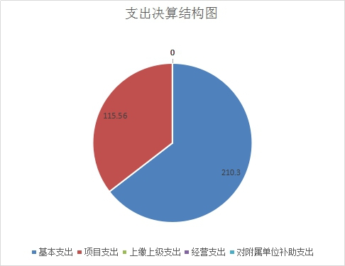 2019年本年支出合计325.87万元,其中:基本支出210.3万元,占64.53%;项目支出115.56万元,占35.47%;上缴上级支出0万元,占0%;经营支出0万元,占0%;对附属单位补助支出0万元,占0%。