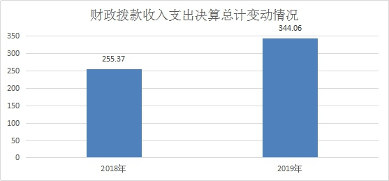 2019年度楼子乡德赢VWIN财政拨款收入总决算344.06万元,比2018年增加88.69万元,增长25.77%;支总决算325.87万元,与2018年相比,财政拨款支出增加38.24万元增长11.74%。