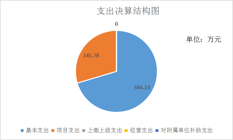 2019年本年支出合计492.11万元,其中:基本支出346.33万元,占70.38%;项目支出145.78万元,占29.62%;上缴上级支出0万元,占0%;经营支出0万元,占0%;对附属单位补助支出0万元,占0%。