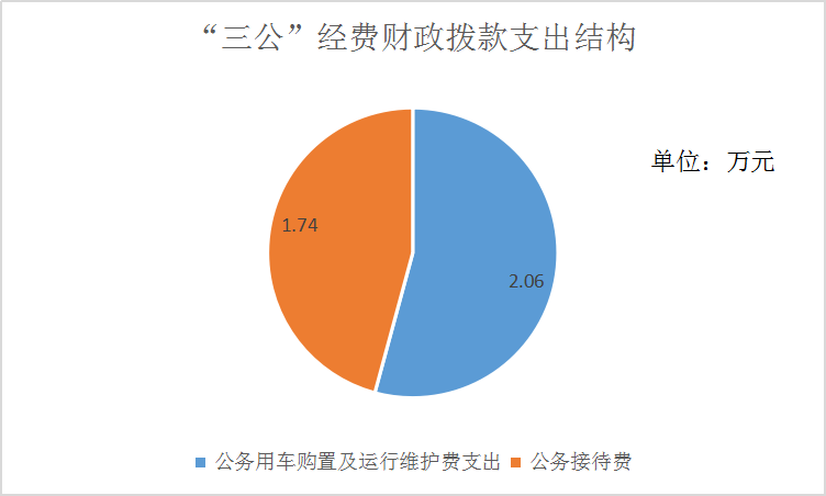 2019年“三公”经费财政拨款支出决算中,因公出国(境)费支出决算0万元,占0%;公务用车购置及运行维护费支出决算2.06万元,占45.78%;公务接待费支出决算1.74万元,占38.66%。具体情况如下: