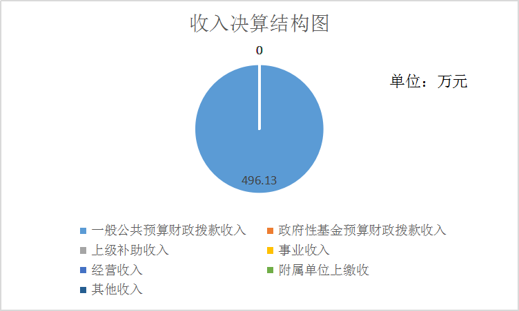 2019年本年收入合计496.13万元,其中:一般公共预算财政拨款收入496.13万元,占100%;政府性基金预算财政拨款收入0万元,占0%;上级补助收入0万元,占0%;事业收入0万元,占0%;经营收入0万元,占0%;附属单位上缴收入0万元,占0%;其他收入0万元,占0%。