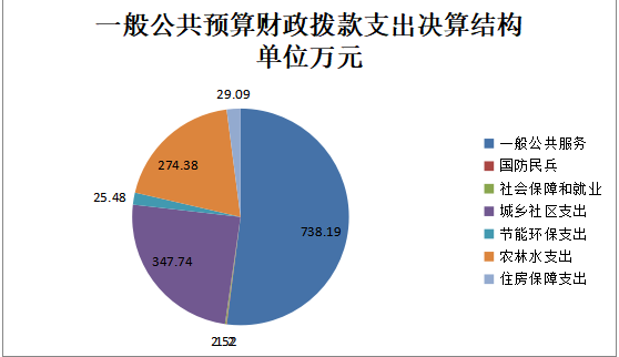 1.一般公共服务(类): 支出决算为738.19万元,完成预算100%。