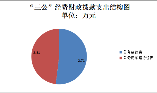 2019年“三公”经费财政拨款支出决算中,因公出国(境)费支出决算0万元,占0%;公务用车购置及运行维护费支出决算2.51万元,占42.91%;公务接待费支出决算2.71万元,占26.7%。具体情况如下: