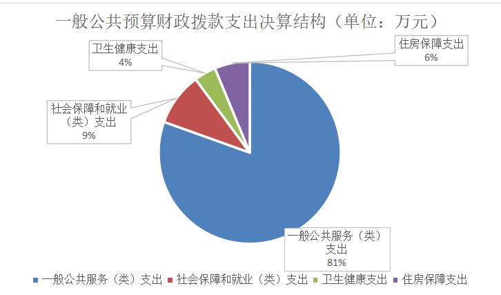 2019年一般公共预算财政拨款支出246.07万元,主要用于以下方面:一般公共服务(类)支出198万元,占80.46%;社会保障和就业(类)支出23.12万元,占9.4%;卫生健康支出9.6万元,占3.9%;住房保障支出15.35万元,占6.24%。