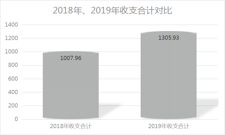2019年度收、支总计1305.93万元。与2018年相比,收、支总计增加297.97万元,增长29.56%。主要原因是基