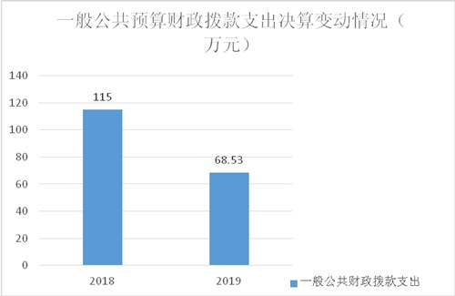 2019年一般公共预算财政拨款支出68.53万元,占本年支出合计的100%。与2018年相比,一般公共预算财政拨款减少46.47万元,下降40.4%。主要变动原因是项目支出减少