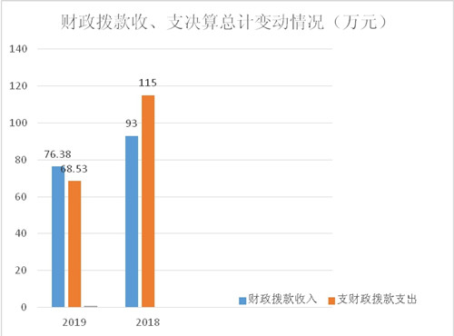 2019年财政拨款收入76.38万元、支出总计68.53万元。与2018年相比,财政拨款收、支总计各减少16.62万元、46.47万元,分别下降17.87%、40.4%。主要变动原因是项目支出减少。