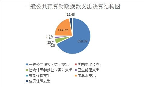 2019年一般公共预算财政拨款支出527.62万元,主要用于以下方面:一般公共服务(类)支出358.09万元,占67.87%;国防支出(类)0.8万元,占0.15%;社会保障和就业(类)支出25.7万元,占4.87%;卫生健康支出9.67万元,占1.83%;节能环保支出3.16万元,占0.60%,农林水支出114.72万元,占21.75%;住房保障支出15.48万元,占2.93%。