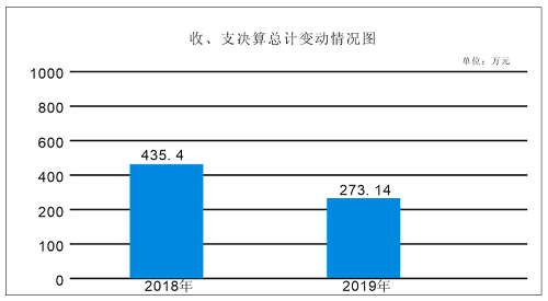 2019年度收、支总计273.14万元。与2018年相比,收、支总计各减少162.26万元,下降37.3%。主要变动原因是项目资金减少。