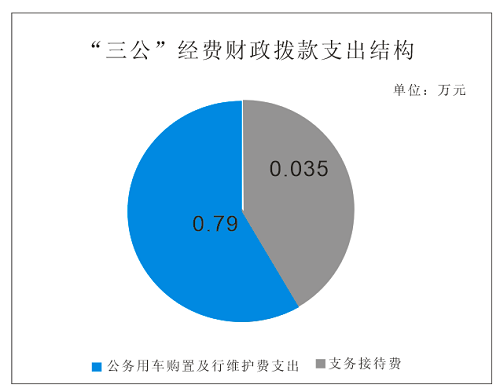 2019年“三公”经费财政拨款支出决算中,因公出国(境)费支出决算0万元,占0%;公务用车购置及运行维护费支出决算0.79万元,占79%;公务接待费支出决算0.035万元,占17.5%。具体情况如下: