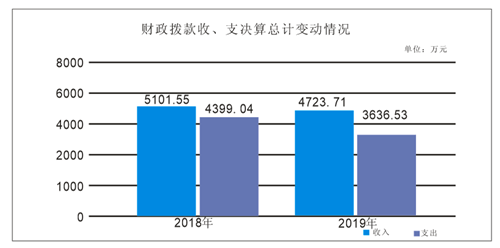2019年财政拨款收入4723.71万元、支出总计3636.53万元。与2018年相比,财政拨款收入减少377.84万元,下降7%。主要变动原因是办案业务经费减少,支出下降762.51万元,下降17%,主要变动原因是项目资金减少。