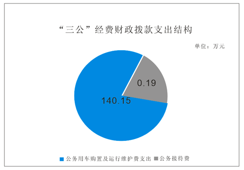 2019年“三公”经费财政拨款支出决算中,因公出国(境)费支出决算0万元,占0%;公务用车购置及运行维护费支出决算140.15万元,占99%;公务接待费支出决算0.19万元,占1%。具体情况如下: