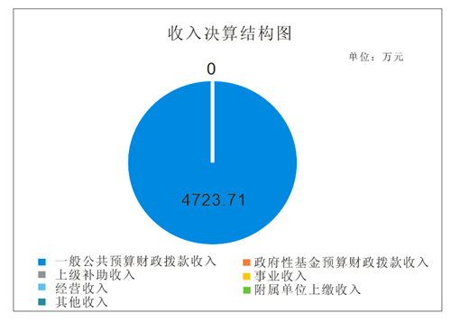 2019年本年收入合计4723.71万元,其中:一般公共预算财政拨款收入4723.71万元,占100%;政府性基金预算财政拨款收入0万元,占0%;上级补助收入0万元,占0%;事业收入0万元,占0%;经营收入0万元,占0%;附属单位上缴收入0万元,占0%;其他收入0万元,占0%。