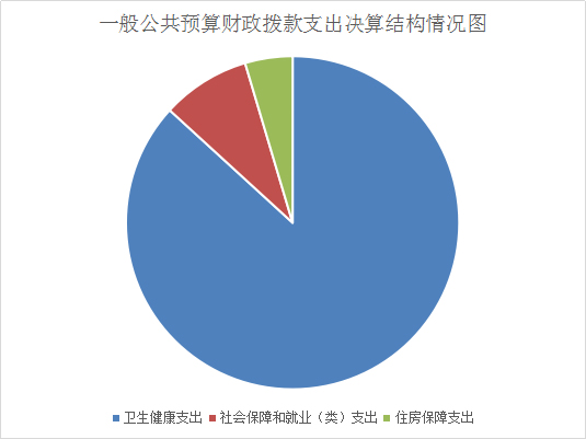 2019年一般公共预算财政拨款支出208.6万元,主要用于以下方面:一般公共服务(类)支出0万元,占0.00%;教育支出(类)0万元,占0.00%;科学技术(类)支出0万元,占0.00%;文化旅游体育与传媒(类)支出0万元,占0.00%;社会保障和就业(类)支出17.88万元,占8.6%;卫生健康支出181.16万元,占86.8%;住房保障支出9.56万元,占4.6%。