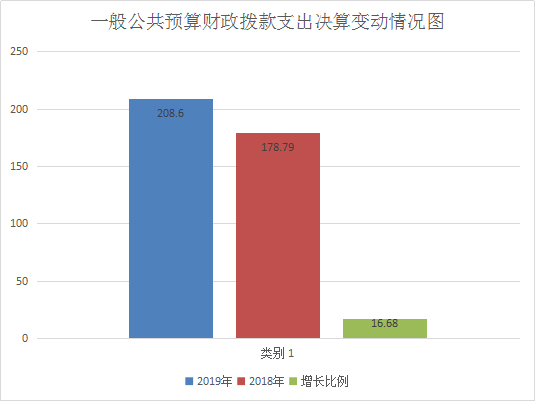 2019年一般公共预算财政拨款支出208.6万元,占本年支出合计的100%。与2018年相比,一般公共预算财政拨款增加29.81万元,增长16.68%。主要变动原因是人员增加、公用经费增加。