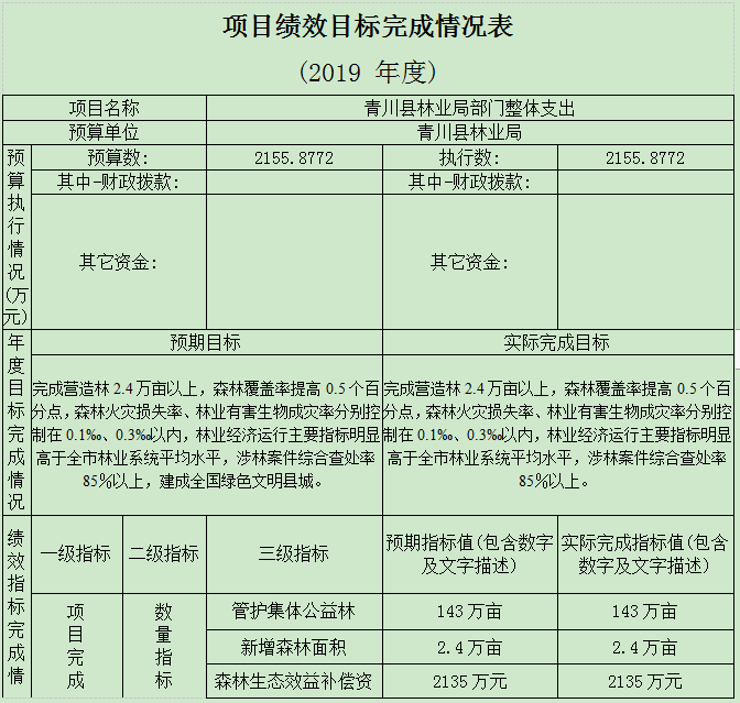 青川县林业生态保护恢复项目2019年绩效评价报告
