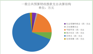 2019年我部门支出为8385.26万元,其中:社会保障和就业支出数为291.65万元;卫生健康支出数为98.53万元;节能环保支出数为1711万元;城乡社区支出数为499.09万元;农林水支出数5627.34万元;住房保障支出数为157.64万元。