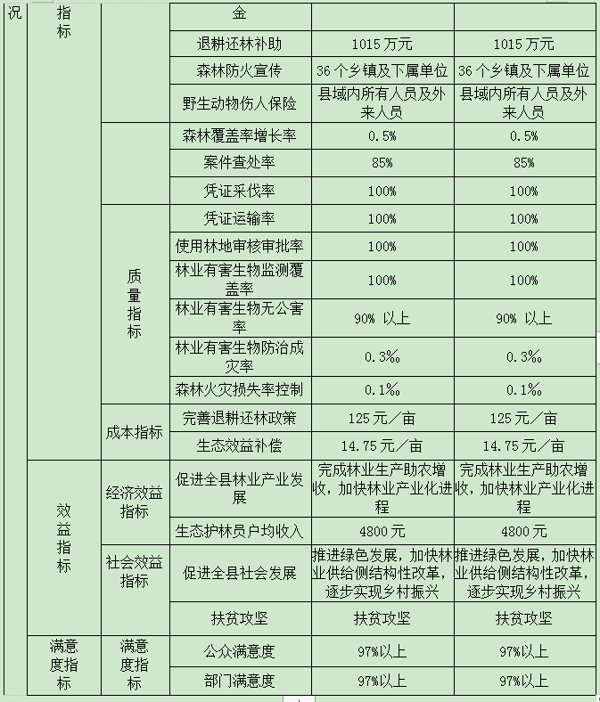 ④满意度指标完成情况分析。通过林业生态保护恢复资金在全县范围林业方面的使用,林农和林场职工工作热情较高,工作效率和质量也高,近几年来,我县国有林区未发生一起森林火灾,运行效果好,成效显著。