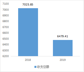 2019年度收、支总计6479.41万元。与2018年相比,收、支总计各减少301.04万元、.245.4万元,分别下降8%、8%主要变动原因是项目支出减少。