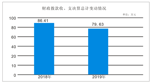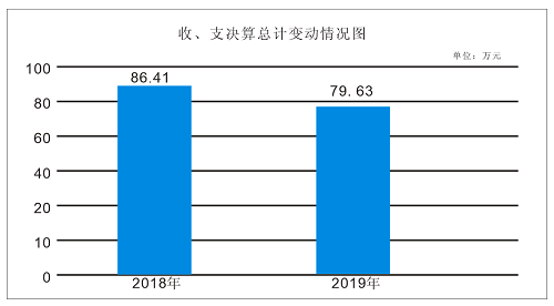 2019年度收、支总计79.63万元。与2018年相比,收、支总计各减少6.78万元、20.1万元,分别下降15%、32%。主要变动原因是减少了人员支出和项目支出。