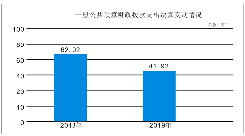 2019年一般公共预算财政拨款支出41.92万元,占本年支出合计的100%。与2018年相比,一般公共预算财政拨款减少了20.1万元,下降32%。主要变动原因是减少了人员支出和项目支出。