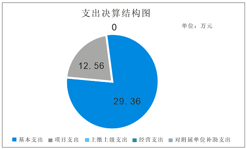 2019年本年支出合计41.92万元,其中:基本支出29.36万元,占70%;项目支出12.56万元,占30%;上缴上级支出0万元,占0%;经营支出0万元,占0%;对附属单位补助支出0万元,占0%。