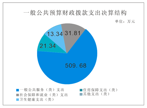 2019年一般公共预算财政拨款支出576.17万元,主要用于以下方面:一般公共服务(类)支出509.68万元,占88%;教育支出(类)0万元,占0%;科学技术(类)支出0万元,占0%;文化旅游体育与传媒(类)支出0万元,占0%;社会保障和就业(类)支出31.81万元,占6%;卫生健康支出13.34万元,占2%;住房保障支出21.34万元,占4%。