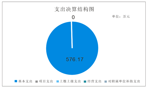 2019年本年支出合计576.17万元,其中:基本支出576.17万元,占100%;项目支出0万元,占0%;上缴上级支出0万元,占0%;经营支出0万元,占0%;对附属单位补助支出0万元,占0%。