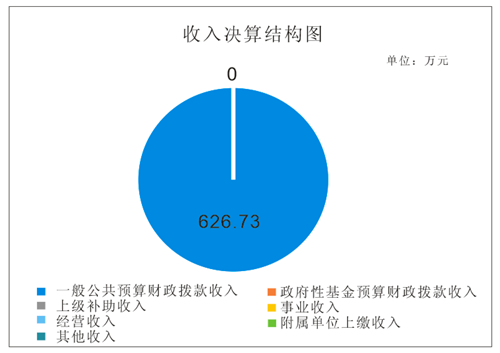 2019年本年收入合计626.73万元,其中:一般公共预算财政拨款收入626.73万元,占100%;政府性基金预算财政拨款收入0万元,占0%;上级补助收入0万元,占0%;事业收入0万元,占0%;经营收入0万元,占0%;附属单位上缴收入0万元,占0%;其他收占0%。