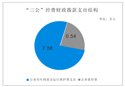2019年“三公”经费财政拨款支出决算中,因公出国(境)费支出决算0万元,占0%;公务用车购置及运行维护费支出决算7.56万元,占93%;公务接待费支出决算0.54万元,占7%。具体情况如下: