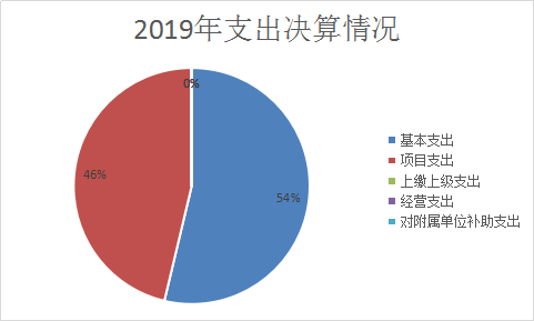 2019年本年支出合计691.41万元,其中:基本支出371.44万元,占53.72%;项目支出319.96万元,占46.28%;上缴上级支出0万元,占0%;经营支出0万元,占0%;对附属单位补助支出0万元,占0%。