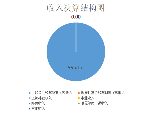 2019年本年收入合计995.17万元,其中:一般公共预算财政拨款收入995.17万元,占100.00%;政府性基金预算财政拨款收入0.00万元,占0.00%;上级补助收入0.00万元,占0.00%;事业收入0.00万元,占0.00%;经营收入0.00万元,占0.00%;附属单位上缴收入0.00万元,占0.00%;其他收入0.00万元,占0.00%。