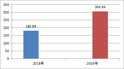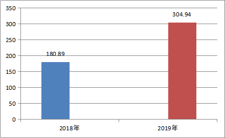 2019年度收入支出总计304.94万元,与2018年相比,收入支出总计增加124.05万元,增长了68.57%。增加的主要原因:一是追加2019年在职、退休人员去世丧葬费抚恤金;二是追加2017年、2018年年终目标考核奖。