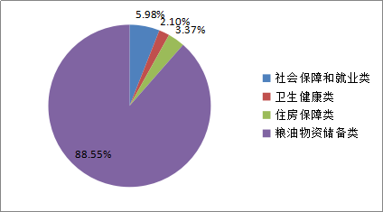 2019年一般公共预算财政拨款支出300.85万元,主要用于以下方面:社会保障和就业(类)支出17.99万元,占支出比重为5.98%;卫生健康(类)支出6.33万元,占支出比重为2.10%;住房保障(类)支出10.13万元,占支出比重为3.37%,;粮油物资储备(类)支出266.40万元,占支出比重为88.55%。