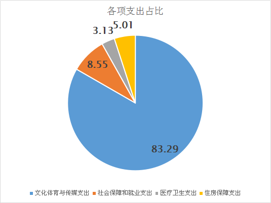 执法队2019年一般公共预算财政拨款支出114.91万元,主要用于以下方面:一般公共服务支出0万元,占0%;文化体育与传媒支出 95.72万元,占83.29%;社会保障和就业支出9.83 万元,占8.55%;医疗卫生支出3.6万元,占3.13%;住房保障支出5.76万元,占5.01%。